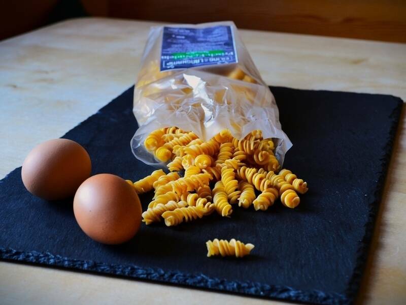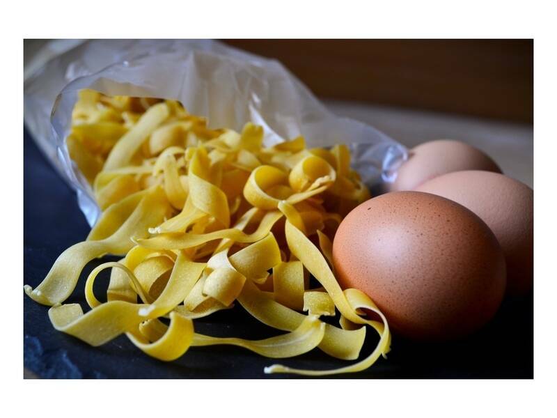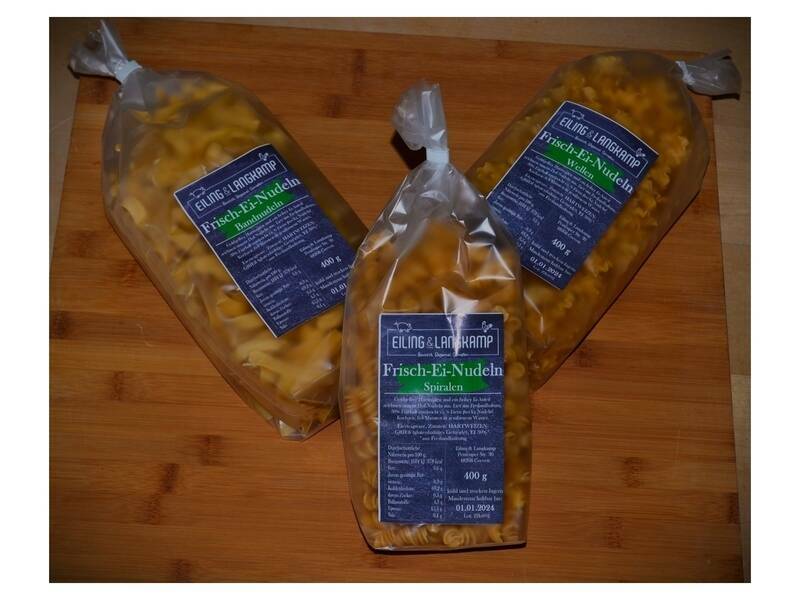 Frisch-Ei-Nudeln mit 30%-Eianteil und Hartweizengrieß.