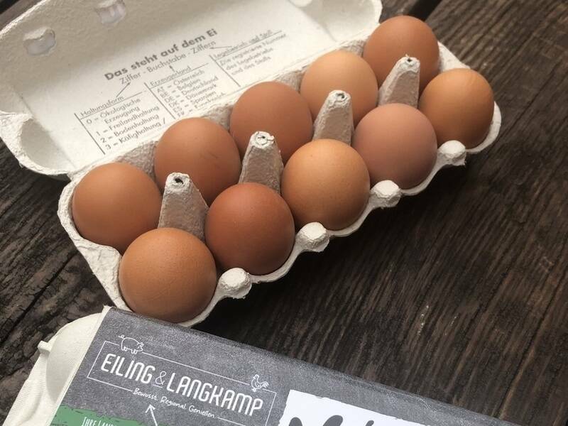 Die Eier stammen aus mobiler Freilandhaltung von unseren eigenen Hühnern.